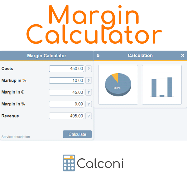 The Margin Calculator is used to calculate the margin trading, gross margin (profit margin or trade margin), the absolute margin, the markup percentage, and the relative markdown margin, as well as costs, revenues, and many other key figures. Based on the last two entries you input, all the other relevant figures related to the margin trading are calculated.