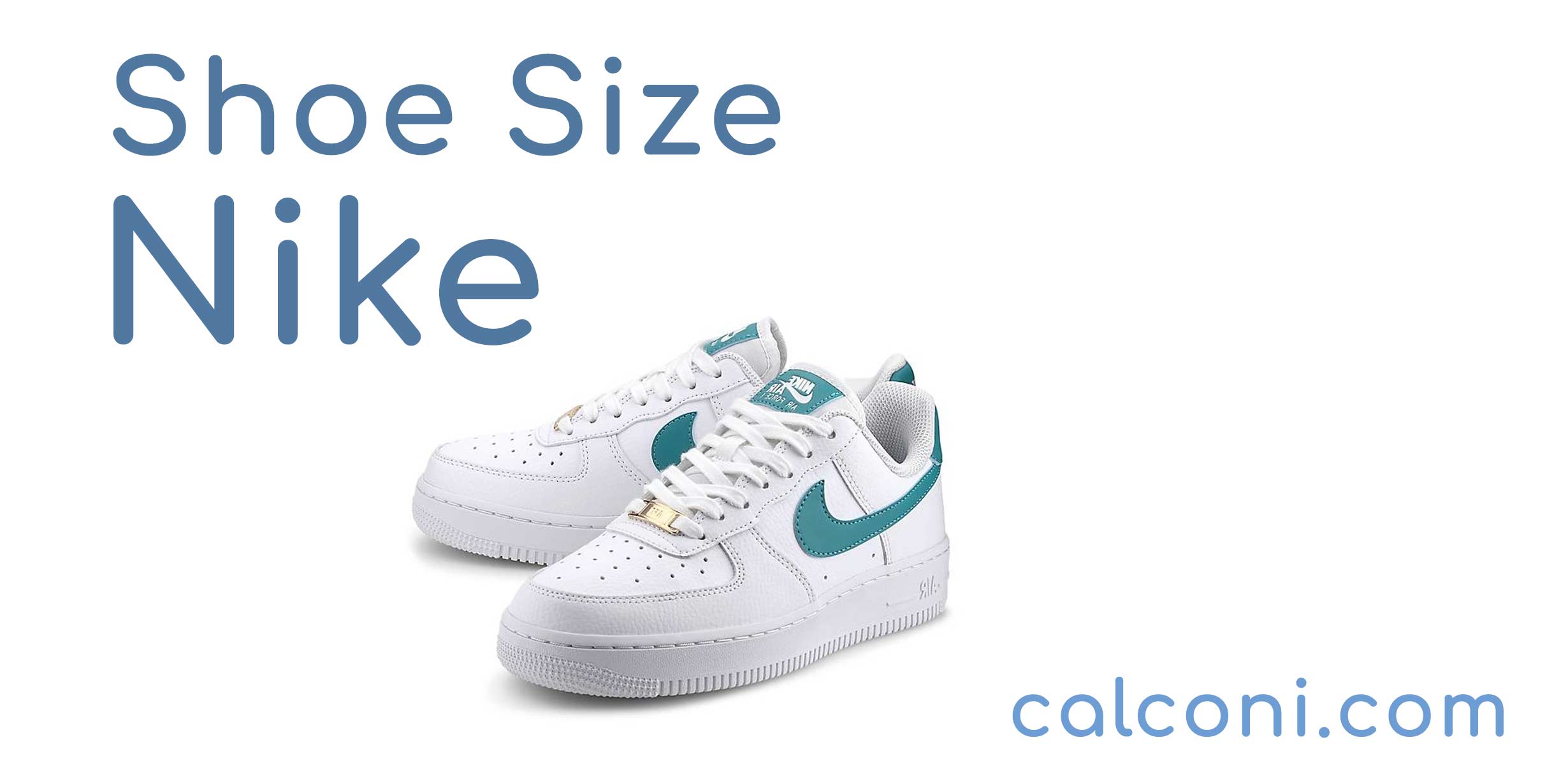 The conversion between US and UK sizes and the matching EU sizes is done differently for Nike shoes from the ISO conversions calculated by the Shoe Size Calculator. Nike sports shoes, for example, are often much smaller than the specified EU shoe sizes would suggest. Hence, Nike disregards the ISO specification and its theoretically calculated size measurements and carries out its own conversions between the EU, UK and US shoe-size systems. The Nike shoe-size charts, as published internationally by Amazon, among others, are presented below for women, men and children.