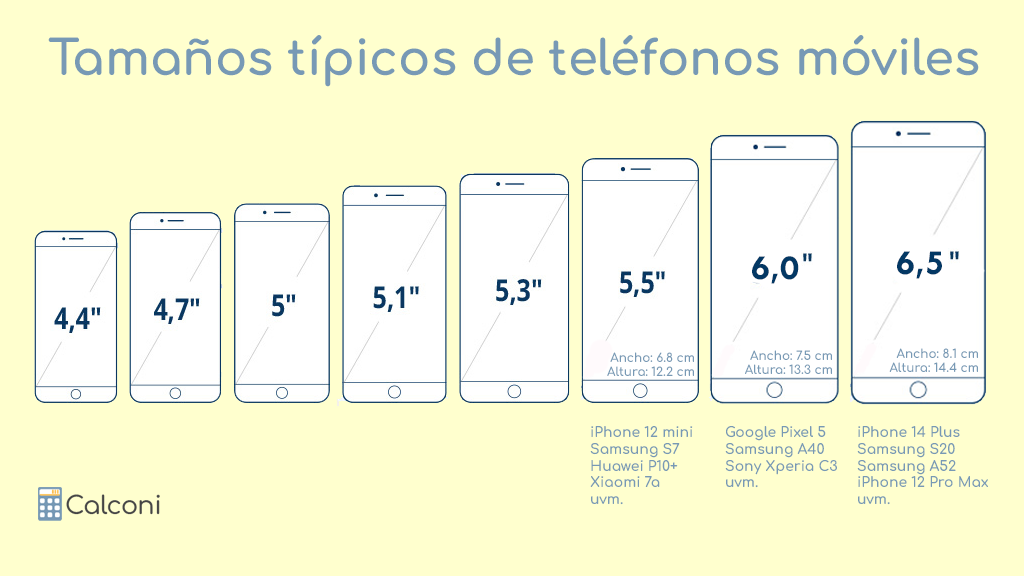 Los tamaños de pantalla típicos de los teléfonos móviles oscilan entre 4 y 7 pulgadas. La siguiente tabla muestra algunos de los formatos más comunes:
