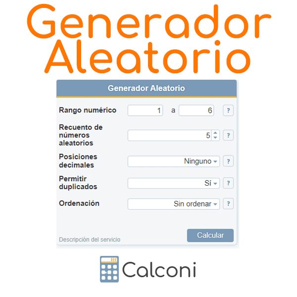 Por favor, especifique el rango para el que deben calcularse los números aleatorios. Esto quiere decir que se deben indicar los valores máximo y mínimo del intervalo. Se pueden escoger números negativos y decimales.
