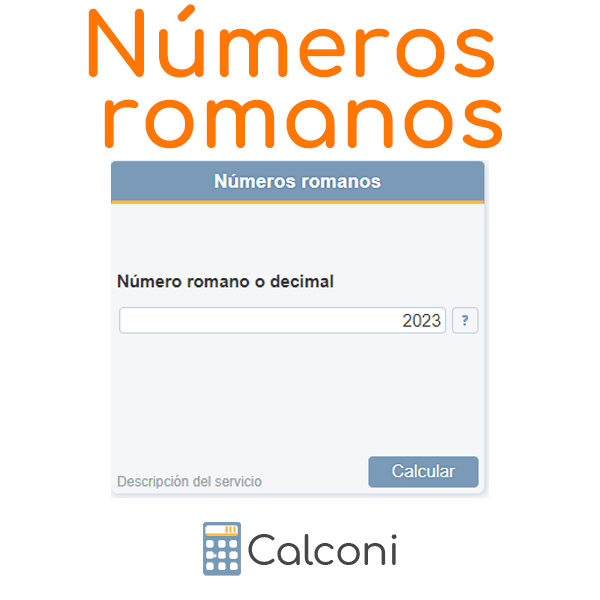Por favor, introduzca un número decimal o un número romano, es decir, una cadena de caracteres formada por las letras mayúsculas o minúsculas M, D, C, L, X, V o I. La calculadora reconoce automáticamente el formato y convierte el número decimal en un número romano o, a la inversa, el número romano en un número decimal.