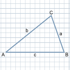 Los tres lados del triángulo se designan con las letras minúsculas a, b y c. El lado opuesto al vértice A se designa con la letra a, el lado b es el opuesto al vértice B y el lado c es el opuesto al vértice C.