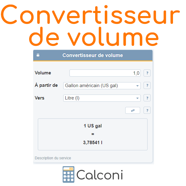 Saisissez le volume à convertir et sélectionnez dans quelle unité de volume cette valeur doit être convertie. Le convertisseur de volume fournit la métrique commune et les unités de volume anglo-américaines les plus courantes pour le calcul. De plus amples informations sur les différentes unités sont cachées derrière les boutons d'aide du calculateur marqués d'un point d'interrogation.