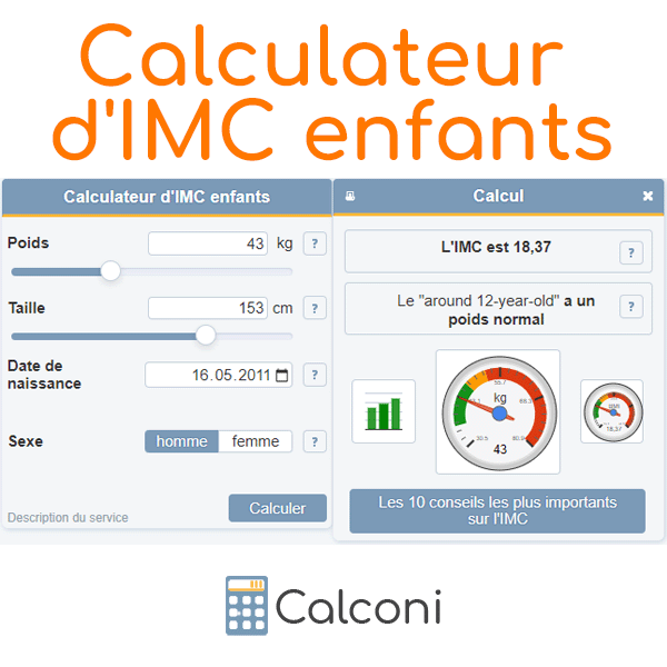 Selon l'âge, des valeurs d'IMC très différentes sont considérées comme normales. Si votre enfant se développe plus vite ou plus lentement que ses pairs, son IMC peut être différent de la moyenne. Utilisez le calculateur d'IMC pour enfants pour comparer le poids corporel de votre enfant à son âge et à sa taille. Considérez les résultats de notre calculateur comme des indications. Ne mettez jamais votre enfant seul au régime et consultez un pédiatre.