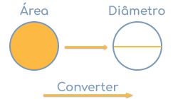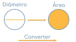 A área A é igual a metade do diâmetro quadrado, ex. (d / 2)² multiplicado pelo número pi (π = 3,1415...) e, por conseguinte A = (d / 2)² × π.
