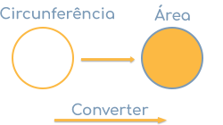 Insira uma área para calcular o raio, diâmetro e circunferência do círculo. Similarmente, quando calcula o raio, o diâmetro e a circunferência, os seus textos de ajuda são atualizados de forma que a derivação da conversão em cada caso possa ser compreendida.