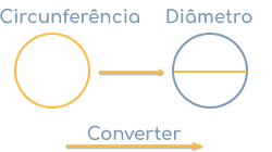 A fórmula para a circunferência é C = d × π. Se convertermos esta fórmula para d, o diâmetro é igual à circunferência dividida por pi (π = 3,1415...), por conseguinte d = C / π.