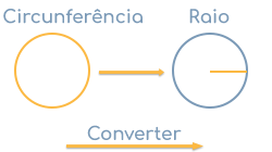 A fórmula para a circunferência é C = 2 × r × π. Quando convertemos esta fórmula para r, obtemos r = C / π / 2, que é metade da circunferência dividida por pi (π = 3,1415...), por conseguinte r = C / π / 2.